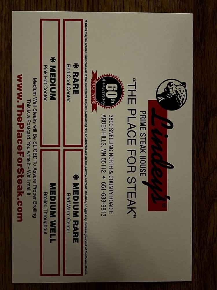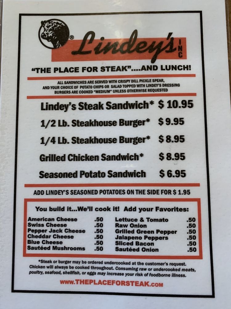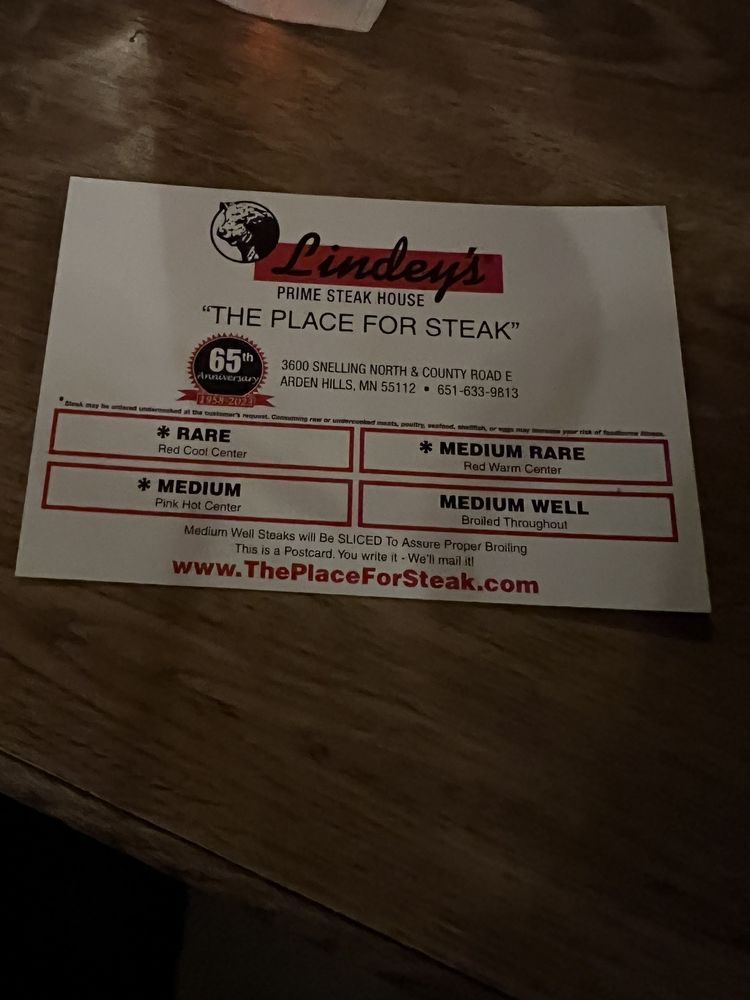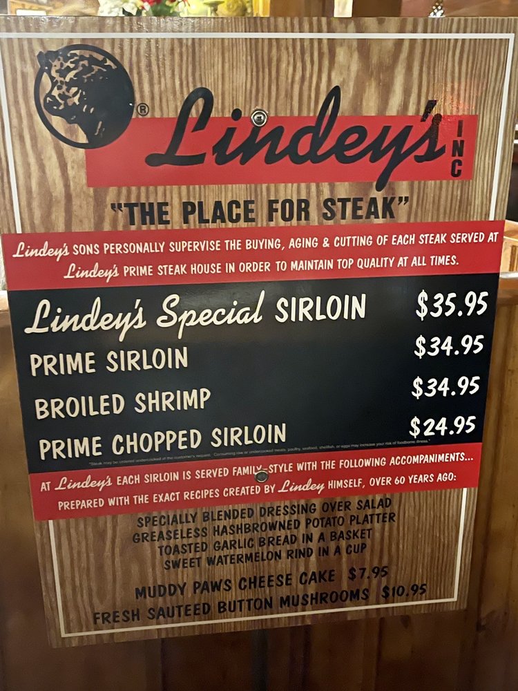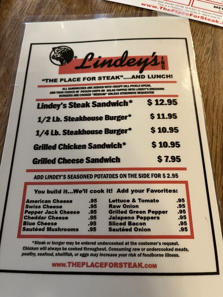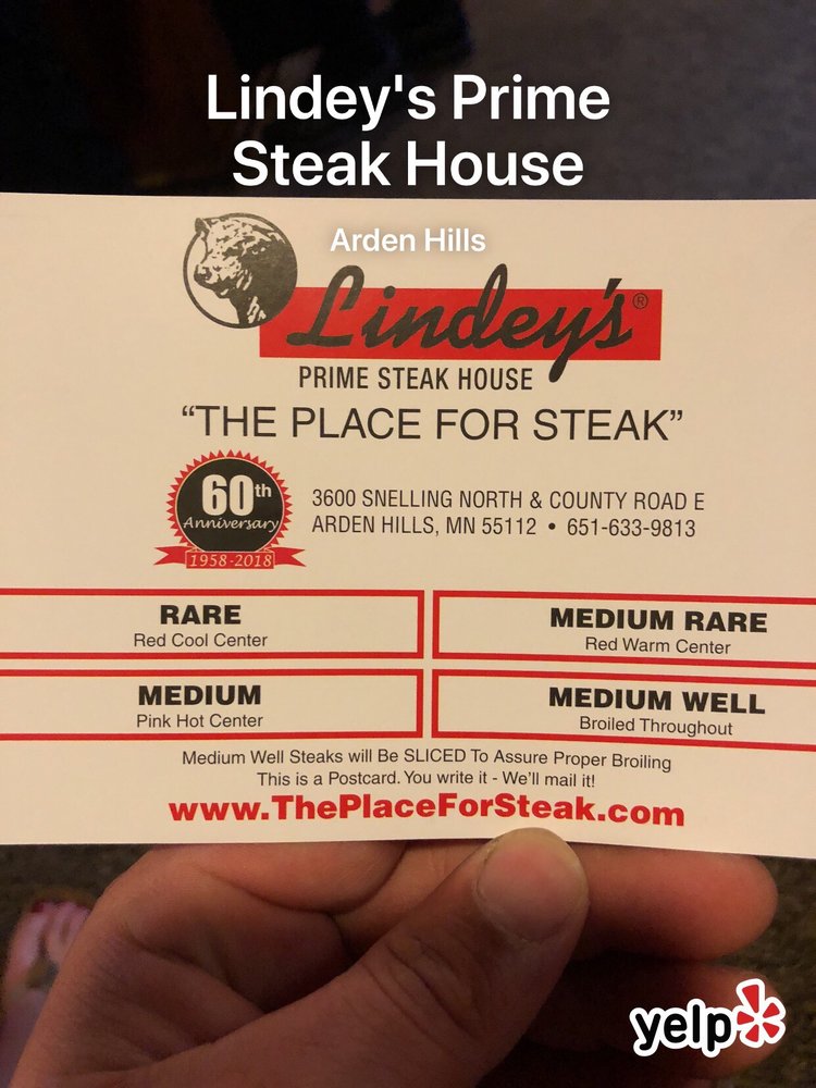 Introducing the menu at Lindey's Prime Steak House, a classic steakhouse in Arden Hills, MN, known for its old-school charm and consistent flavors. The menu offers four main options: Deluxe Prime Steak, Prime steak, Shrimp, or Chopped Steak, all served with a side salad, hash browns, and garlic bread. Guests can also add on a plate of broiled mushrooms for an extra $10. Customers rave about the generous portions, especially the Deluxe Prime Steak, which is massive and juicy. The ambiance is cozy and reminiscent of a traditional supper club, with friendly waitstaff and attentive service. The sides are served family-style and are unlimited, making it a great spot for special occasions or dinner gatherings. If you're a meat lover looking for a classic steakhouse experience, Lindey's Prime Steak House is a must-try.